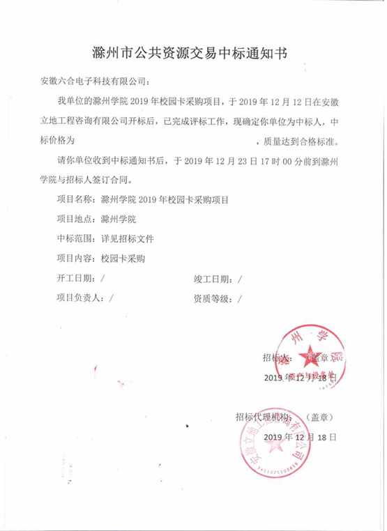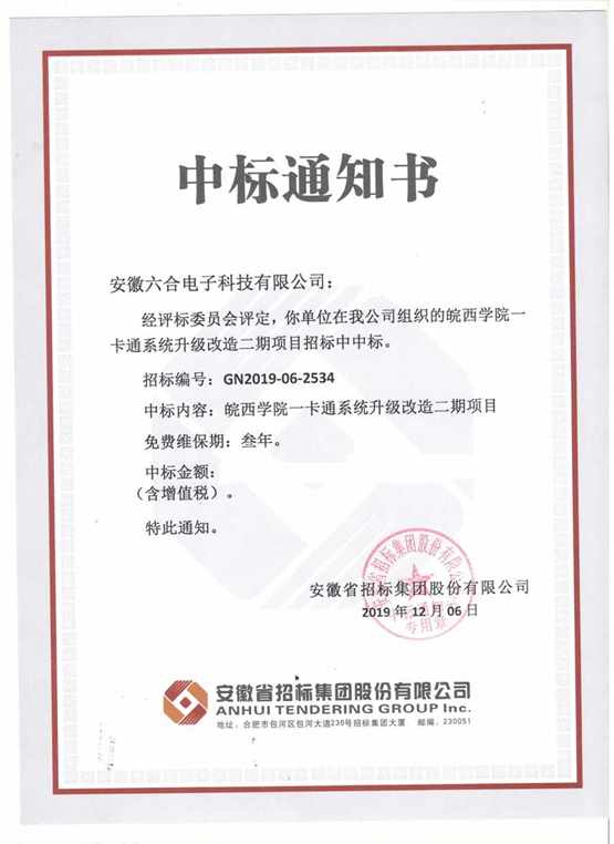 安徽六合電子科技有限公司 電話:0551-68660092 686600932019年歲末,我公司分別中標(biāo)了皖西學(xué)院、滁州學(xué)院等信息化項(xiàng)目,并于中國(guó)銀聯(lián)簽署了業(yè)務(wù)合作協(xié)議,以上成績(jī)的取得充分體現(xiàn)了客戶對(duì)我公司高度的認(rèn)可和信任,也與我公司的一線員工在前線的辛勤付出密不可分。